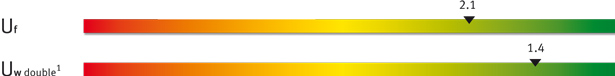 - سری پنجره های استاندارد 70 میلی متری با لنگه پنهان و عایق مناسب Uf = 2.1 W/m²K